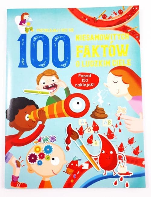 Ile kości liczy twoje ciało? Skąd bierze się kolor czerwonych krwinek? Dlaczego bąki brzydko pachną? Poznaj odpowiedzi na te pytania i 97 pozostałych faktów wypełniających po brzegi tę wyjątkową książeczkę o ludzkim ciele. Dzięki naklejkom, którymi możesz uzupełniać ilustracje, nauka stanie się dla ciebie prawdziwą przygodą.
