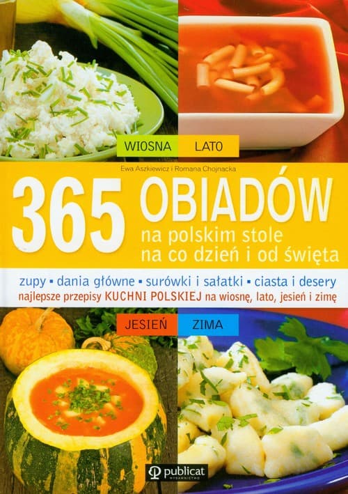 365 pełnowartościowych i smacznych obiadów kuchni polskiej Dania na co dzień i od święta Podział na 4 pory roku - wiosną wykorzystasz nowalijki, a zimą ugotujesz pożywne dania i zupy Czas przygotowania i stopień trudności Kaloryczność potraw Koszt wykonania