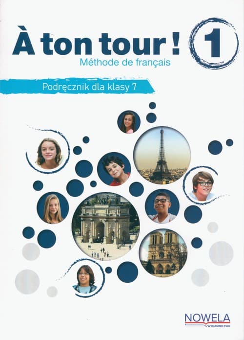 Podręcznik À ton tour ! 1 dla klasy 7 z nowej serii do nauki języka francuskiego w szkole podstawowej wchodzi do szkół w roku szkolnym 2023/2024. Numer ewidencyjny w wykazie MEiN: 1191/1/2023. Zapewni przyjemną pracę nauczycielom, a uczniom skuteczne opanowanie nowego języka. Wszystkich przekona, że nauka języka francuskiego może być niesamowicie atrakcyjna. ZALETY PODRĘCZNIKA nieprzytłaczająca ilość materiału dynamika wprowadzanych wiadomości (w niewielkich porcjach: leksyka, gramatyka, kultura, fonetyka i komunikacja, działanie, powtórka) rozwijanie wszystkich kompetencji, a zwłaszcza kompetencji komunikacyjnej werbalnej (wiele ćwiczeń fonetycznych i nagrań, przykłady strategii ułatwiających rozmowę) przyjazne rozwiązania graficzne (komiks, ramki, drogowskazy, sekcje, wyróżnienia kolorystyczne) podejście interkulturowe spiralny układ treści testy sprawdzające do poszczególnych rozdziałów ciekawe i nieskomplikowane projekty dodatek gramatyczny i obszerny słowniczek tabele fonetyczne z nagraniami do nauki poprawnej wymowy nagrania dialogów i ćwiczeń dostępne za pomocą kodów QR na rozkładówkach i na okładce bogata obudowa metodyczna podręcznika