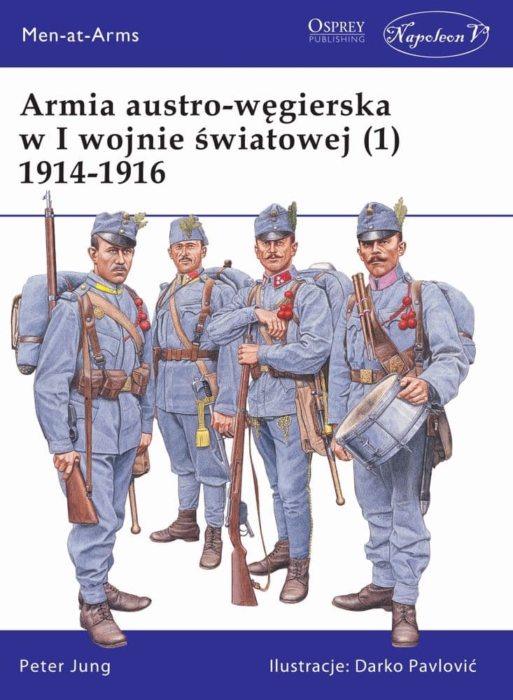 Rola, którą w Wielkiej Wojnie odegrała armia monarchii austro-węgierskiej, pozostanie niemal nieznana wśród Czytelników w Polsce, a to zapewne dlatego, że koniec wojny wiązał się z upadkiem tego państwa. Rola ta była jednak kluczowa: wojska austro-węgierskie stanowiły znakomitą większość sił państw centralnych na froncie włoskim, dużą część na froncie rosyjskim, a na Bałkanach biło się siedem austro-węgierskich korpusów. Monarchia wysłała także, o czym mało kto wie, kontyngent do Turcji i Palestyny. Pierwszą część opowieści o losach tej skomplikowanej, wielonarodowej organizacji podczas wojny stanowi zwięzły, ale szczegółowy tekst, uzupełniony tabelami i zestawieniem dystynkcji, zilustrowany rzadkimi fotografiami oraz kolorowymi planszami prezentującymi umundurowanie.