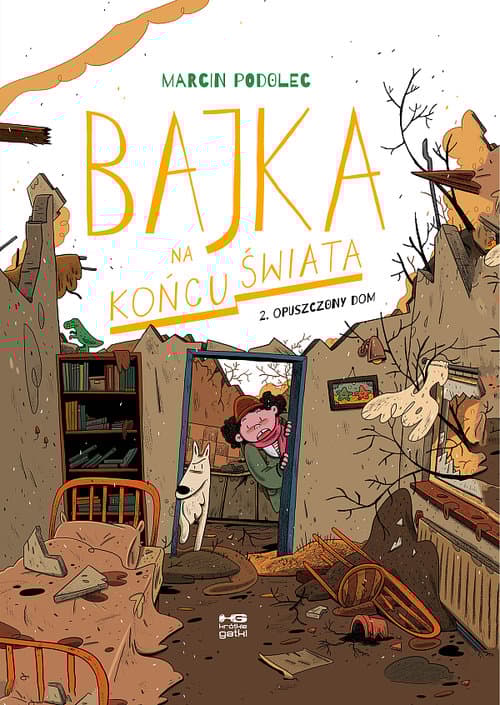 Wiktoria i Bajka wędrują w poszukiwaniu rodziców. Mijają dymiące kratery, wymarłe lasy i gruzowiska, a kierunek marszu wyznaczają im tajemnicze światła na niebie. Świat po wielkim wybuchu to zdecydowanie nie najlepsze miejsce dla dziewczynki i psa. Jeśli już jednak mamy tam dziewczynkę i psa, pozostaje nam trzymać kciuki za powodzenie ich wyprawy! Bajka na końcu świata to postapokaliptyczna seria dla najmłodszych autorstwa Marcina Podolca, jednego z najzdolniejszych polskich twórców komiksów i filmów animowanych.