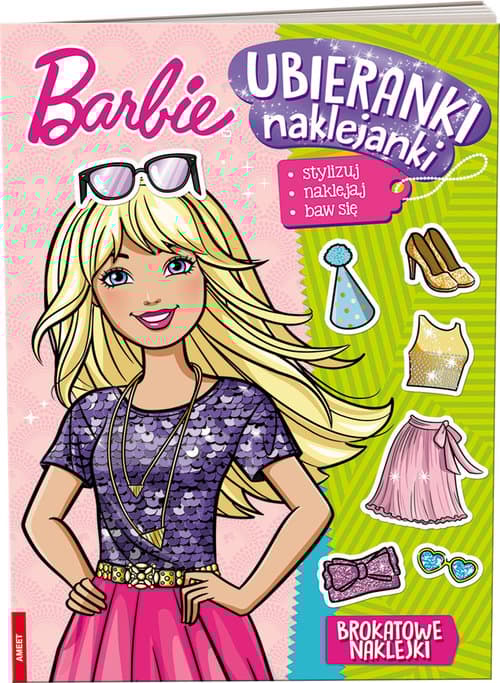 Barbie ma dzisiaj ochotę naprawdę zabłysnąć! Bluzka z krateczką i zwiewna spódnica czy złocista suknia, która swym blaskiem przyćmi wszystko dookoła? Wybierz dla Barbie i jej przyjaciółek ubrania, na każdą okazję w których będą się bawić jeszcze lepiej, a ty razem z nimi. Zabawę w przebieranki urozmaicą naklejki wielokrotnego użytku, w tym także brokatowe.
