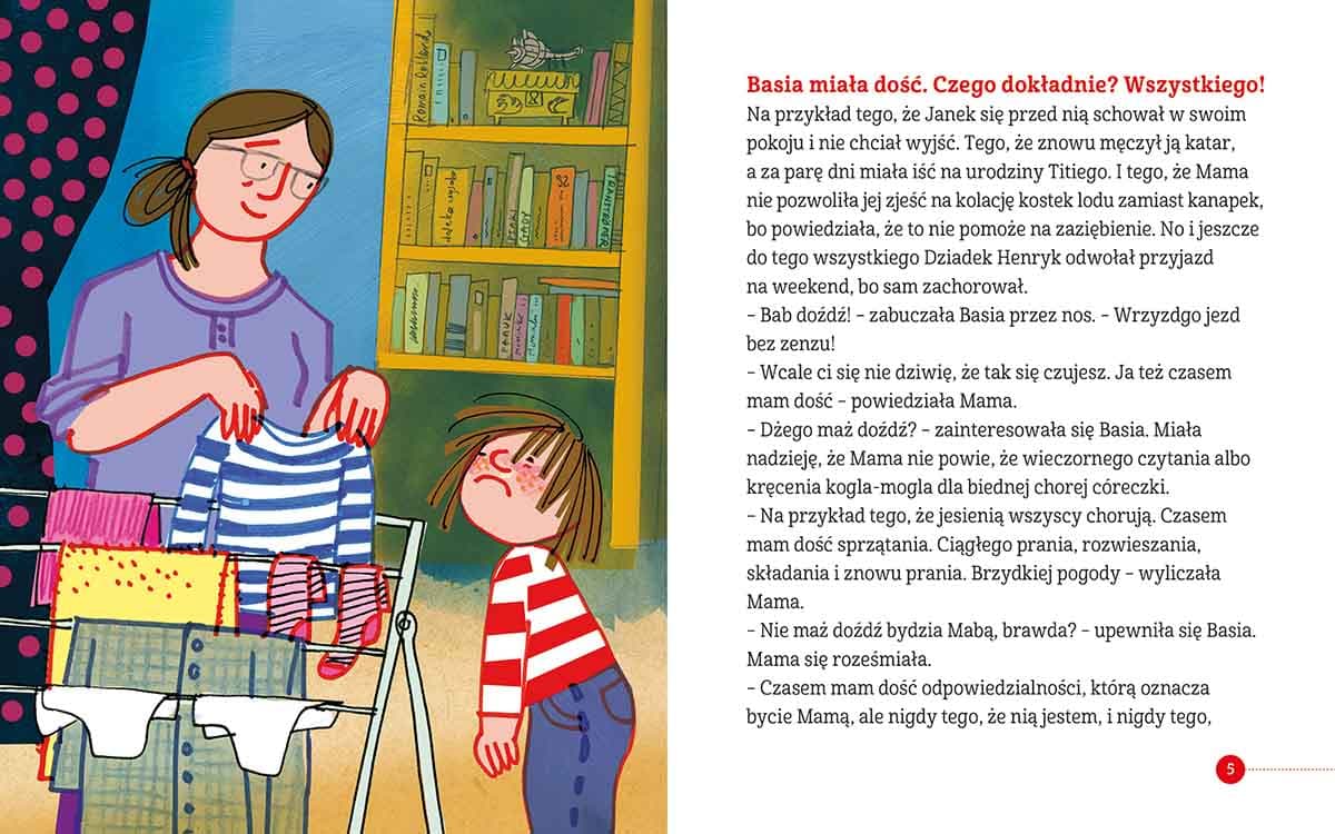 Basia radzi sobie w różnych trudnych sytuacjach. W czasie remontu i kiedy rodzi się jej braciszek, i kiedy Mama wraca do pracy, a nawet w czasie pobytu w szpitalu. Czy to znaczy, że Basia zawsze jest dzielna? I czy dzielność zawsze oznacza to samo? A może czasem do dawania sobie rady potrzebny jest kogel-mogel i zwinięcie w kłębuszek obok Mamy? Basia nie zawsze jest pewna, jak to jest z tą jej dzielnością, ale jedno nie ulega wątpliwości: daje sobie radę też z tą niepewnością! Czytając ten wyjątkowy tom przygód Basi, mali czytelnicy dowiedzą się, że z każdą trudną sytuacją, nawet taką, z której na pierwszy rzut oka nie ma wyjścia, można sobie poradzić. Basia daje radę – czasem sama, a czasem z pomocą bliskich i życzliwych osób. W książce znajdują się opowiadania: „Basia i nowy braciszek”, „Basia i Mama w pracy”, „Basia i remont” oraz „Basia i chorowanie”.