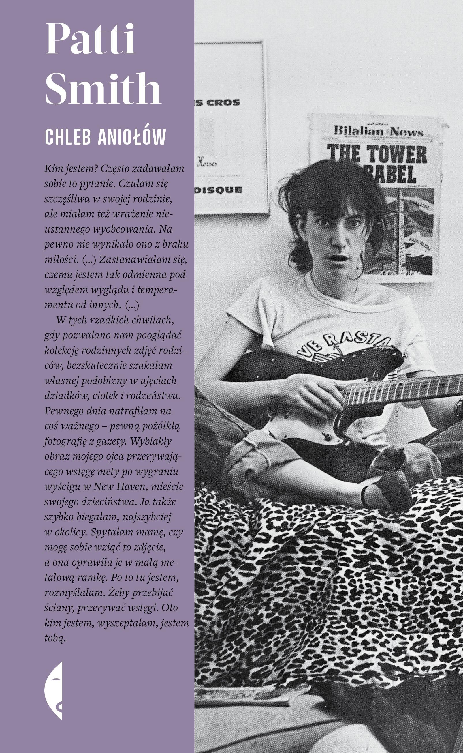 "Wczesne dzieciństwo ma proustowskie, wypełnione okresami izolacji z powodu choroby i rekonwalescencji. Dorastanie – dickensowskie, rozgrywające się w przeznaczonym do rozbiórki kompleksie mieszkaniowym, gdzie dzieci zapadają na gruźlicę, kolejni sąsiedzi znikają, a po domach grasują szczury. Jako nastolatka poznaje Rimbauda i Dylana, dzięki którym otwiera się na sztukę. Wyrusza do Nowego Jorku i próbuje sił w pisaniu, jednak przyjaciele ze sceny undergroundowej rozbudzają w niej pragnienie artystycznego spełnienia na większą skalę. Ale po pierwszych znaczących sukcesach muzycznych spotyka Freda „Sonica” Smitha i zostawia nowojorskie życie za sobą, by zamieszkać wśród starych wierzb i bujnych grusz nad kanałem w St. Clair Shores. Gdy z biegiem lat kolejni bliscy Patti odchodzą, ratunkiem przed melancholią okazują się, jak wiele razy wcześniej, muzyka i literatura – jedyne stałe w jej życiu napędzanym twórczą wolnością i siłą wyobraźni. Chleb aniołów to wyrafinowana autobiograficzna opowieść jednej z najważniejszych artystek XX i XXI wieku. Smith nie zaleca się do czytelnika, ale z odwagą i charakterystyczną dla siebie wrażliwością się przed nim odsłania. Jej nowa książka jest także listem miłosnym do czasem okrutnego, a czasem pięknego świata. "