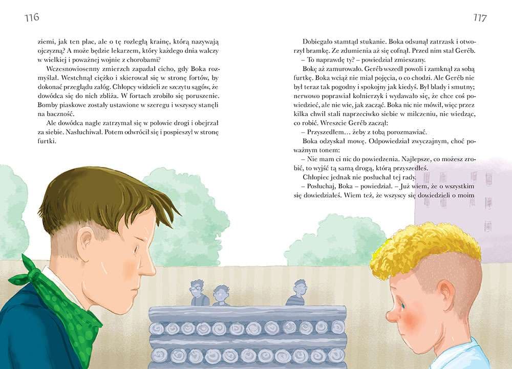 Chłopcy z Placu Broni w serii Kolorowa Klasyka to najpiękniejsze kolorowe wydanie tej powieści na rynku! Książka zawiera wspaniałe, barwne ilustracje, jej atutem jest duża, ułatwiająca szybkie czytanie czcionka. Edycja na szlachetnym papierze, bardzo trwała i estetyczna. Wydanie zawiera pełny tekst utworu, bez skrótów i cięć w treści. Wydanie to nie zawiera opracowania. W XIX wieku w Budapeszcie zapewne znajdowało się wiele pustych placów, ale ten przy ulicy Pawła był wyjątkowy. Tam spotykali się chłopcy, którzy pod wodzą Boki tworzyli grupkę zorganizowaną na kształt wojska. Każdy z nich miał swoją rolę i stopień, wszyscy postępowali honorowo. Wyjątkowy wśród nich był Nemecsek, nieśmiały i drobny. Spokój chłopców z ulicy Pawła przerwały Czerwone Koszule, czyli grupa chłopców mająca bazę w Ogrodzie Botanicznym. Chcieli zająć plac, co doprowadziło do wojny. Boka, niczym prawdziwy generał, przygotował plan obrony ukochanego miejsca. Nikt nie spodziewał się, komu przypadnie najbardziej doniosła rola wojennego bohatera... Powieść Ferenca Molnára od lat ciekawi i wzrusza młodych czytelników. To historia o przyjaźni i miłości do skrawka ziemi niosąca za sobą morał, że największy potencjał może leżeć w kimś, kogo zupełnie o to nie podejrzewamy. Chłopcy z Placu Broni od Wydawnictwa GREG to wydanie w twardej oprawie, pięknie ilustrowane przez Mikołaja Kamlera i przetłumaczone przez Stefana Mrowca. Wszystkie nazwy własne występują w oryginalnym zapisie. Ich prawidłową wymowę umożliwią rzetelnie opracowane przypisy oraz nagrania dostępne on-line. Polecamy!Szczegółowe informacje na temat książki Chłopcy z Placu Broni
