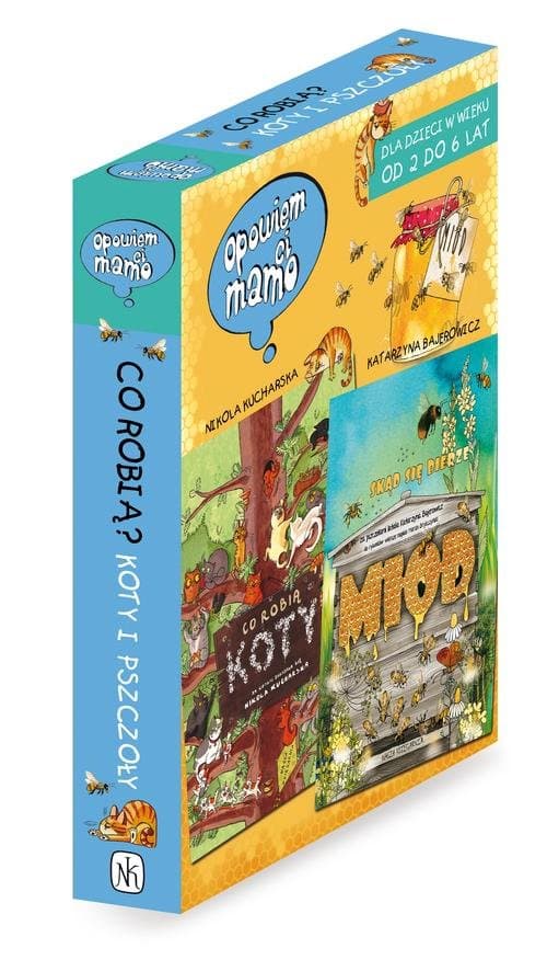 Dwie książki dla najmłodszych w eleganckim pudełku, idealne na prezent! Czym zajmują się koty? A pszczoły? Dowiecie się tego z dwóch książek: „Opowiem ci, mamo, co robią koty” oraz „Opowiem ci, mamo, skąd się bierze miód”. Czeka was tutaj nie tylko czytanie i oglądanie rysunków, lecz również rozwiązywanie ciekawych zadań i ćwiczenie spostrzegawczości poprzez wyszukiwanie poukrywanych szczegółów. Co robią koty? To dobre pytanie. Wcale nie jestem pewna, czy każdy Polak umie na nie odpowiedzieć. Dlatego moim zdaniem powinien poznawać te niezwykłe zwierzęta, gdy jest jeszcze małym Polakiem. W codziennym życiu, ale i z mądrych, zabawnych, rozwijających wrażliwość książek. Potem nie tylko będzie umiał odpowiedzieć na pytania swoich dzieci, ale przede wszystkim nie przejdzie już obojętnie obok żadnego kota. Miłej lektury! Dorota Sumińska