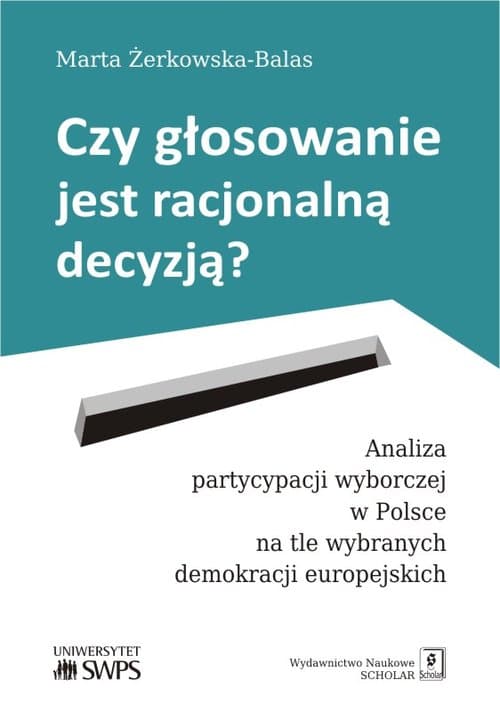 Niemal wszystkie demokracje borykają się z problemem malejącego poziomu uczestnictwa wyborczego. Dlaczego jedni ludzie głosują, a inni nie? Znalezienie odpowiedzi na to pytanie stało się jednym z ważniejszych wyzwań stojących przed badaczami nauk politycznych. Istnieje wiele podejść teoretycznych i empirycznych, które mają na celu wyjaśnienie zagadki frekwencji wyborczej. Omawiana w niniejszej książce teoria racjonalnego wyboru w prosty i intuicyjny sposób wyjaśnia przyczyny absencji wyborczej. Ludzie nie głosują, ponieważ im się to nie opłaca. Koszty, jakie muszą ponieść dokonując wyboru partii, której udzielą poparcia i głosując na nią, przewyższają korzyści płynące z jej wygranej. Niniejsza książka stanowi próbę empirycznego potwierdzenia tej tezy na podstawie danych dotyczących polskich wyborców. MARTA ŻERKOWSKA-BALAS – socjolożka, politolożka, iberystka, adiunkt w Instytucie Nauk Społecznych na Uniwersytecie SWPS w Warszawie. Zajmuje się badaniem mechanizmów kierujących decyzjami wyborców, relacjami między obywatelami a partiami politycznymi oraz zagadnieniami związanymi z praktyką i teorią demokracji.