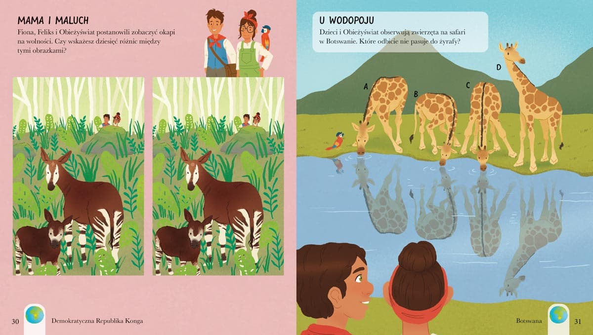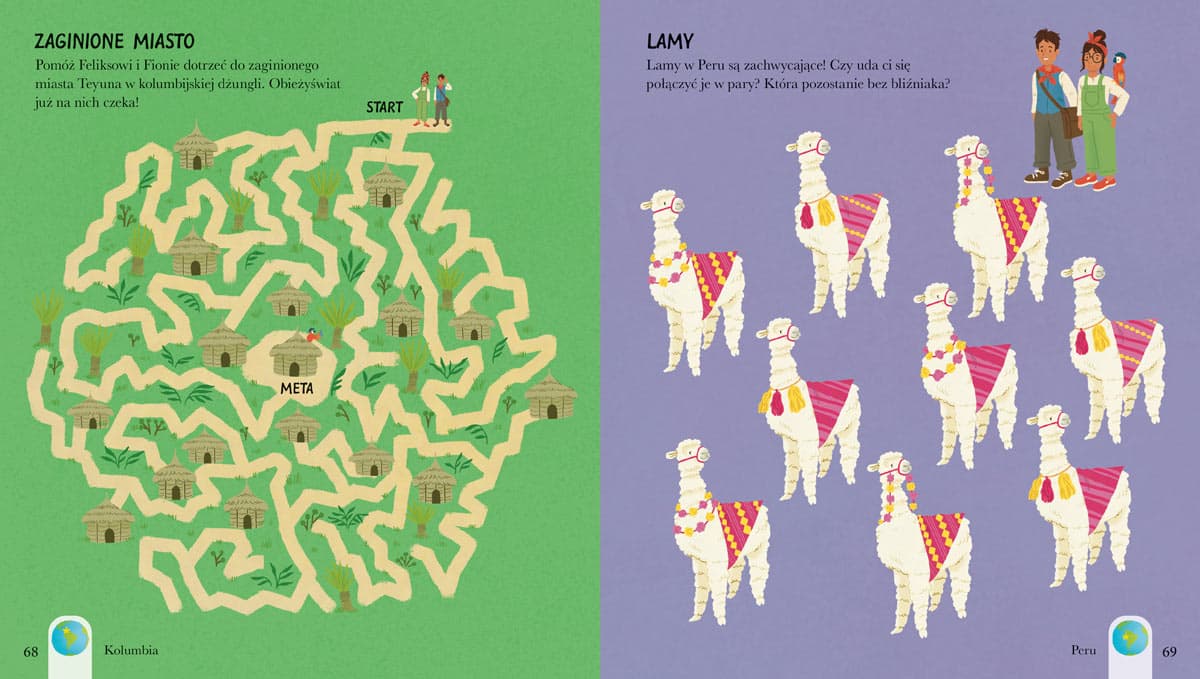 Fiona i Feliks dowiadują się, że ich dziadek był podróżnikiem i objechał świat w 80 dni. Teraz razem ze swoją papugą także wyruszają w podróż. Rozwiąż z nimi masę zadań (np. znajdź podobne, porównaj obrazki, wyszukaj na obrazku, labirynty, sudoku) i poznaj ciekawe fakty na temat rozmaitych atrakcji turystycznych.