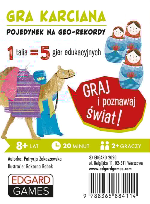 Dookoła świata Geograficzna gra karciana Kieszonkowiec Zakaszewska Patrycja Gra