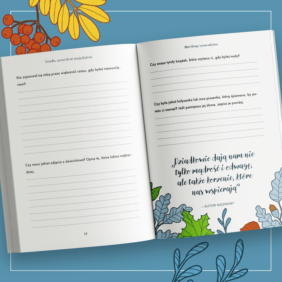 To niezwykły pamiętnik, który daje twojemu dziadkowi możliwość spisania najważniejszych wspomnień. Przemyślane pytania i przystępny układ sprawiają, że każda strona staje się zaproszeniem do dzielenia się historiami, które inaczej mogłyby zniknąć na zawsze.