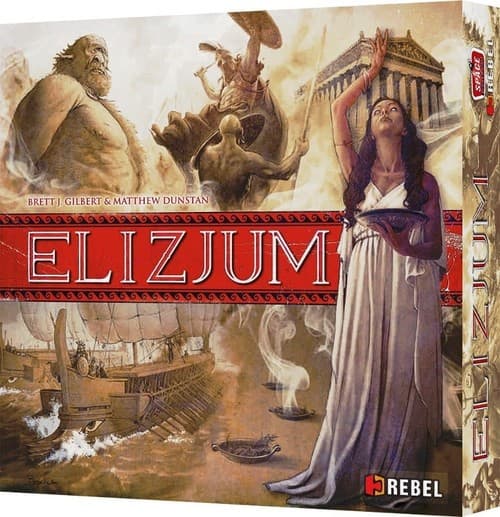 Wciel się w rolę ambitnego półboga i stań w szranki ze swoimi konkurentami, aby zająć poczesne miejsce na Olimpie! Rekrutuj herosów, zdobywaj artefakty oraz podejmuj się niebezpiecznych misji i stwórz swoją własną legendę! W trakcie pięciu epok zbudujesz potężne kombinacje kart, a następnie zniszczysz je i przeniesiesz do swojego Elizjum. Postępując w ten sposób, zdobędziesz punkty zwycięstwa. Spraw, by Twe czyny na wieki zapisały się jako jedna z legend o bogach mitologicznej Grecji! Elizjum to gra w zbieranie zestawów kart reprezentujących bohaterów, przedmioty, moce i bogów. Karty mają unikalne zdolności pozwalające na tworzenie potężnych kombinacji by zdobyć punkty zwycięstwa lub złoto. W czasie pięciu tur gry gracze będą próbować przenieść swoje karty do Elizjum, tworząc własną Legendę. Gra jest doskonale zbalansowana, ma proste zasady i oferuje ogrom możliwości i strategii zagrań. Zawartość pudełka: 168 kart (8 Rodzin) 1 plansza Świątyni 1 plansza Wyroczni 6 płytek Misji 16 Kolumn wpływu 4 dyski Kolejności 1 znacznik Epoki 19 żetonów Nagrody 40 znaczników Złota 45 żetonów Punktów Zwycięstwa 25 żetonów Punktów Prestiżu 12 Pierścieni mocy 4 karty pomocy 4 plansze graczy 1 przewodnik z opisem działania kart 1 instrukcja Liczba graczy: 2 - 4 osoby Wiek: od 14 lat Czas gry: ok. 60 minut