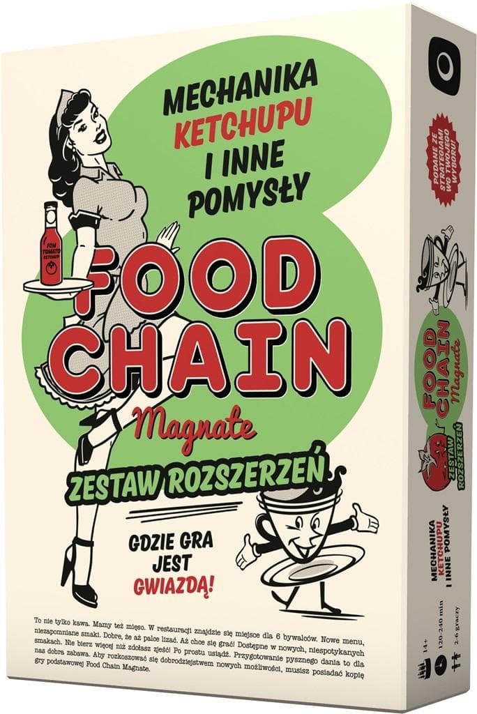 Mechanika Ketchupu i Inne Pomysły to rozszerzenie do gry Food Chain Magnate. Rozszerzenie oferuje 17 zróżnicowanych modułów, które można dołączać do gry pojedynczo, tylko wybrane lub nawet wszystkie razem. Z Ketchupem przy stole może zasiąść od 2 do 6 graczy, czyli o jednego więcej niż w grze podstawowej.