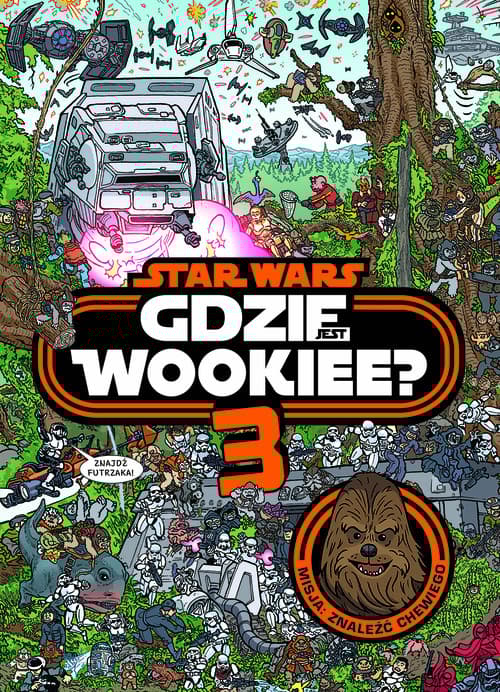 Wybierz się na wielkie poszukiwania legendarnego Wookieego! Sprawdź, co kryje się na pokładzie Gwiazdy Śmierci, rusz na odsiecz Rebelii podczas bitwy o Endor, odwiedź planetę Ahch-To… i znajdź Chewbaccę i jego przyjaciół. Trzecia część popularnej serii zawiera dodatkowe strony z ciekawostkami o Wookieem.