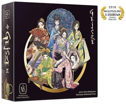 Minimum zasad, maksimum strategii! Ta gra cię zaskoczy! Masz do wykonania tylko 4 działania. Od kolejności, w jakiej je wykonasz, zależy twój sukces! Celem gry jest zdobycie przychylności gejsz. Każda gejsza oczekuje innego podarunku. Jedna pasjonuje się muzyką, inna zbiera wachlarze, a kolejna zgłębia mądre księgi. Przychylność gejszy zdobędzie ten gracz, który podaruje jej właściwe prezenty. Proste zasady gry! • Każdy gracz posiada 4 znaczniki przedstawiające 4 działania możliwe do wykonania podczas gry. Gracz sam decyduje, w jakiej kolejności je wykona, ale musi pamiętać, że każde działanie może wykonać tylko raz! • W trakcie gry gracze wręczają gejszom odpowiednie podarunki. • Na koniec gry sprawdzamy, którym spośród siedmiu gejsz gracze podarowali prezenty. Przychylność gejszy zdobywa ten, kto podarował jej więcej prezentów. Wygra gracz, który zdobędzie przychylność czterech gejsz. Zdobyte nagrody: 2017 r. – NAJLEPSZA GRA 2-OSOBOWA (nominacja Golden Geek, USA)