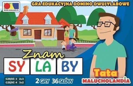 Seria domin „Znam sylaby” wspomaga rozwój poprawnej wymowy, ćwiczy spostrzegawczość wzrokową oraz doskonali analizę i syntezę słuchową słów. Domino przeznaczone jest również do wspomagania początkowej nauki czytania.Wyrazy w dominach to rzeczowniki w mianowniku liczby pojedynczej lub mnogiej.Domina można wykorzystać w gabinetach logopedycznych, na zajęciach pozalekcyjnych, w przedszkolu i w domu. Są doskonałym urozmaiceniem zajęć indywidualnych i grupowych.