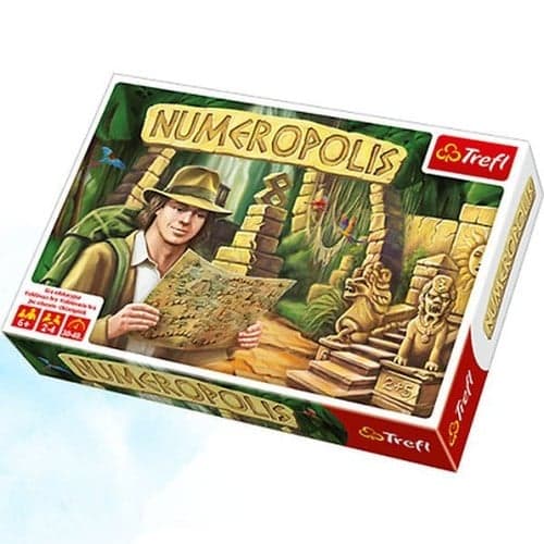 Gra przygodowa, która rozwija umiejętności arytmetyczne. Wyruszcie na pełną przygód ekspedycję do ruin legendarnego miasta Numeropolis! W pierwszej grze należy poruszać się pionkiem po planszy, wykonując działania matematyczne. Druga gra to pojedynek na cyfry, w którym liczy się nie tylko umiejętność liczenia, ale także planowania. Zawartość pudełka: plansza 110 kart z cyframi 32 żetony znaków działań 4 trójdzielne żetony skarbu 4 pionki 4 podstawki kostka instrukcja Wiek 6+ Gra dla 2-4 graczy.