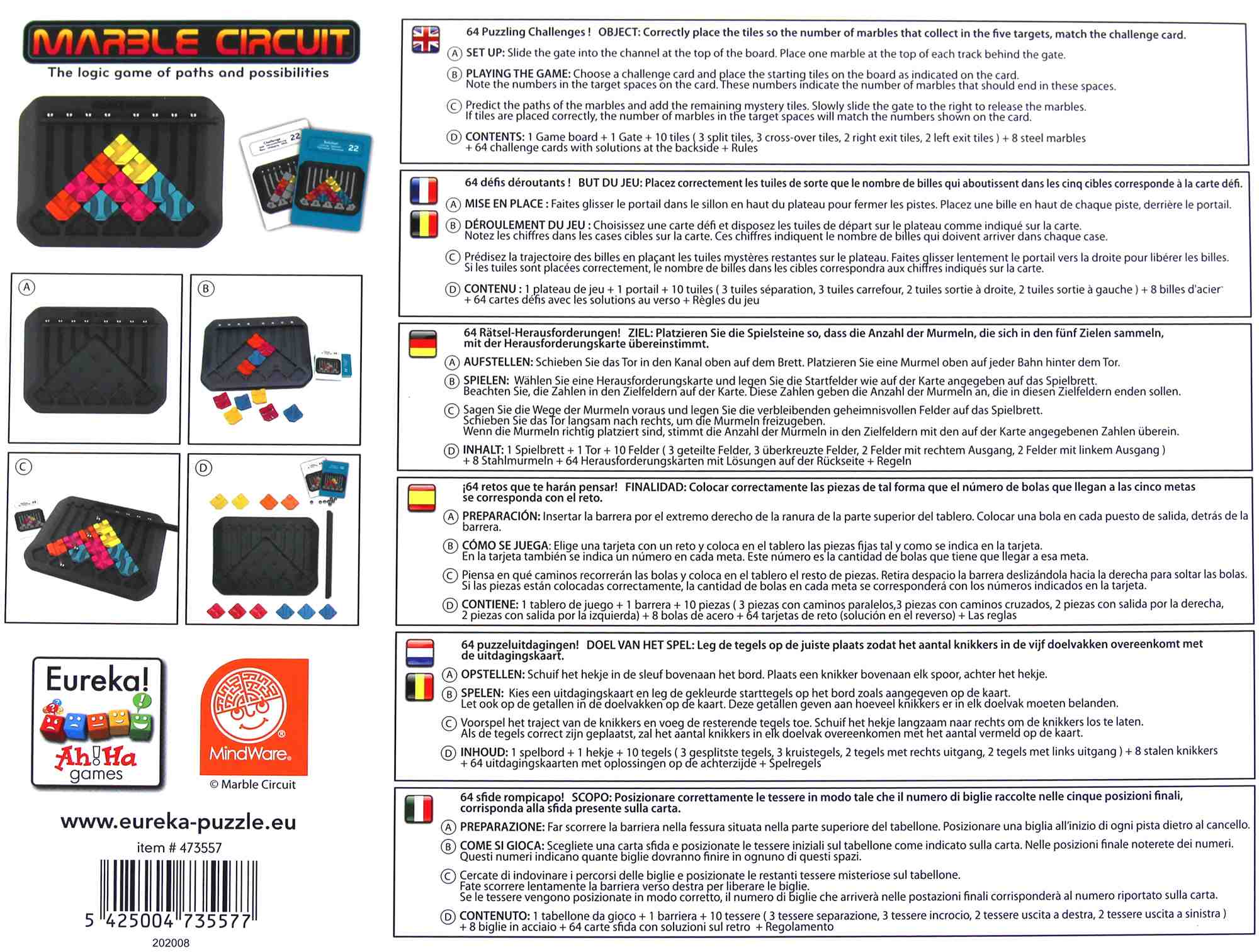 ZAWARTOŚĆ: plansza do gry brama 10 płytek 8 metalowych kulek 64 karty z wyzwaniami i rozwiązaniami instrukcja