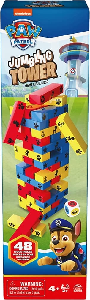 Zbuduj wieżę, ale nie dopuść do jej upadku, bo to oznacza koniec rozgrywki w grze dla dzieci Psi Patrol Wieża od Spin Master Games.