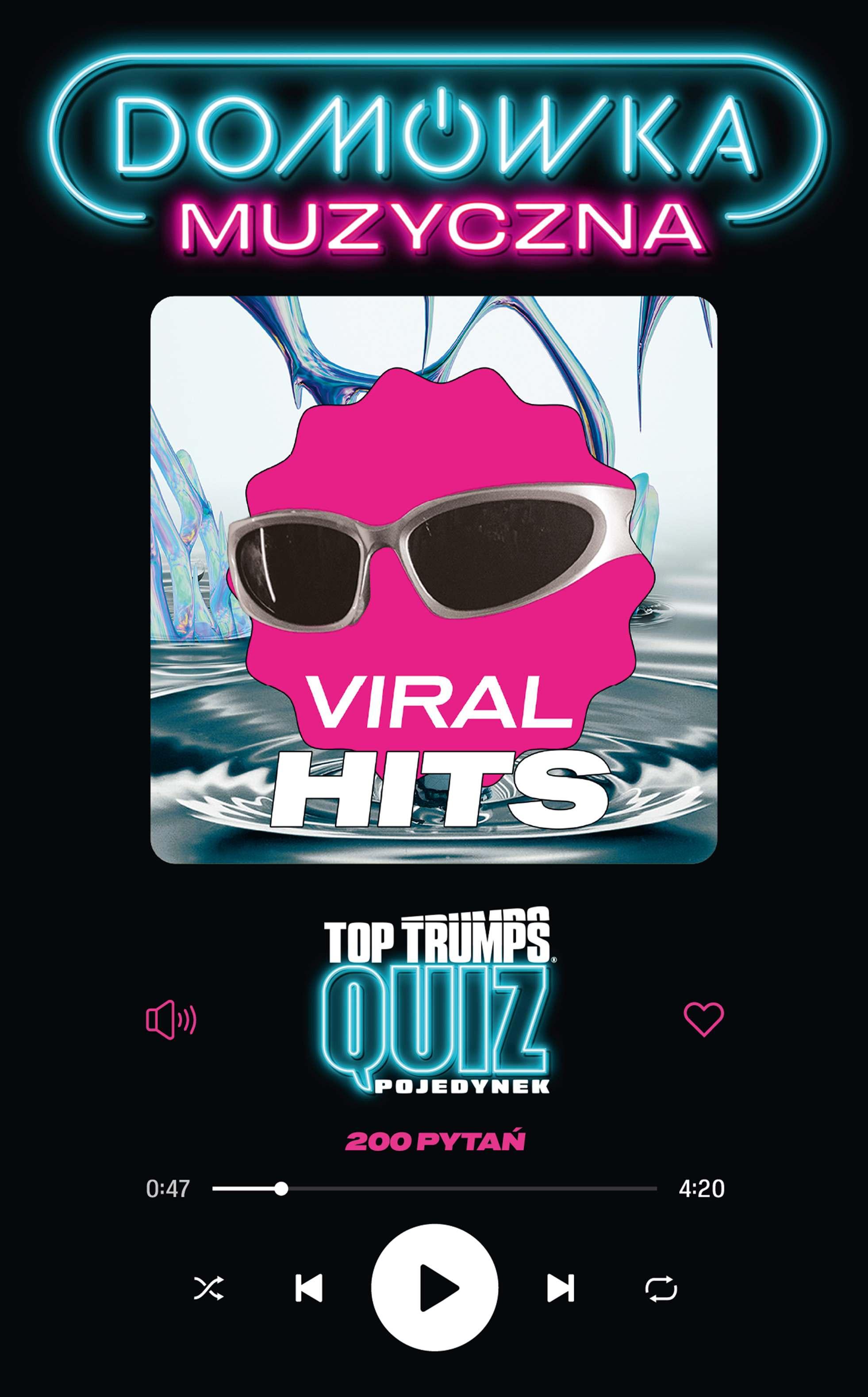 Dlaczego Viral Hits? aktualne tematy i internetowe hity, szybka, głośna, imprezowa rozgrywka, idealna gra na domówkę, pre-drinki i after, zero przygotowań - tylko ekipa i klimat.