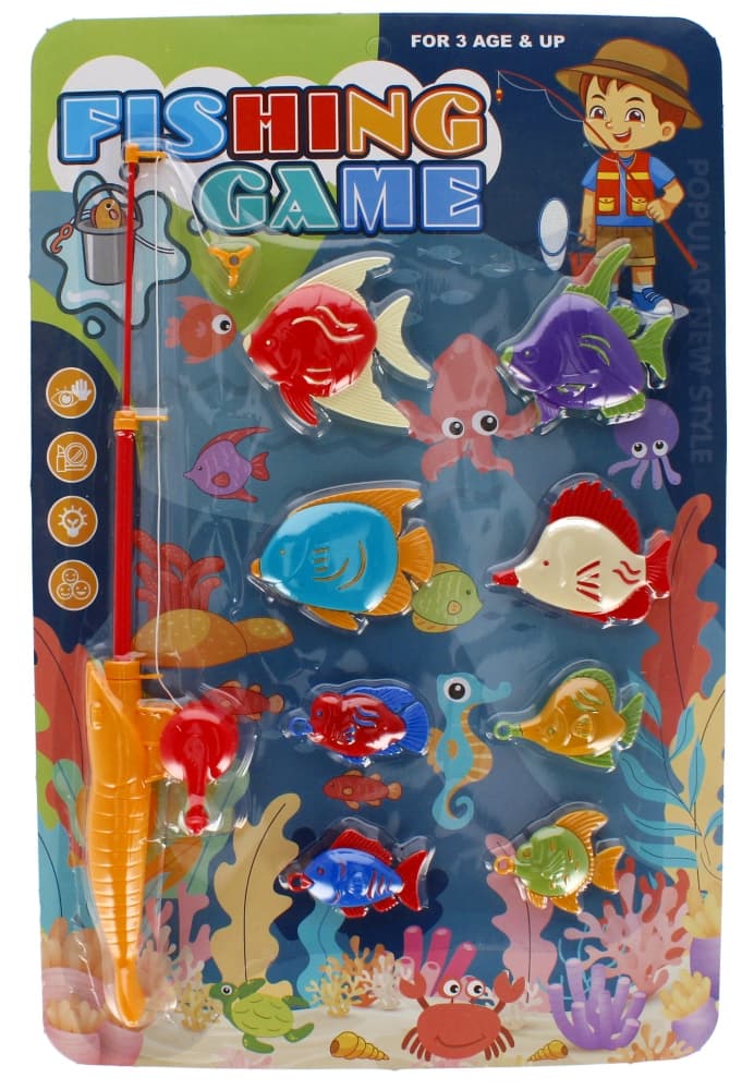 Zawartość zestawu 8 x rybki, 1 x wędka.