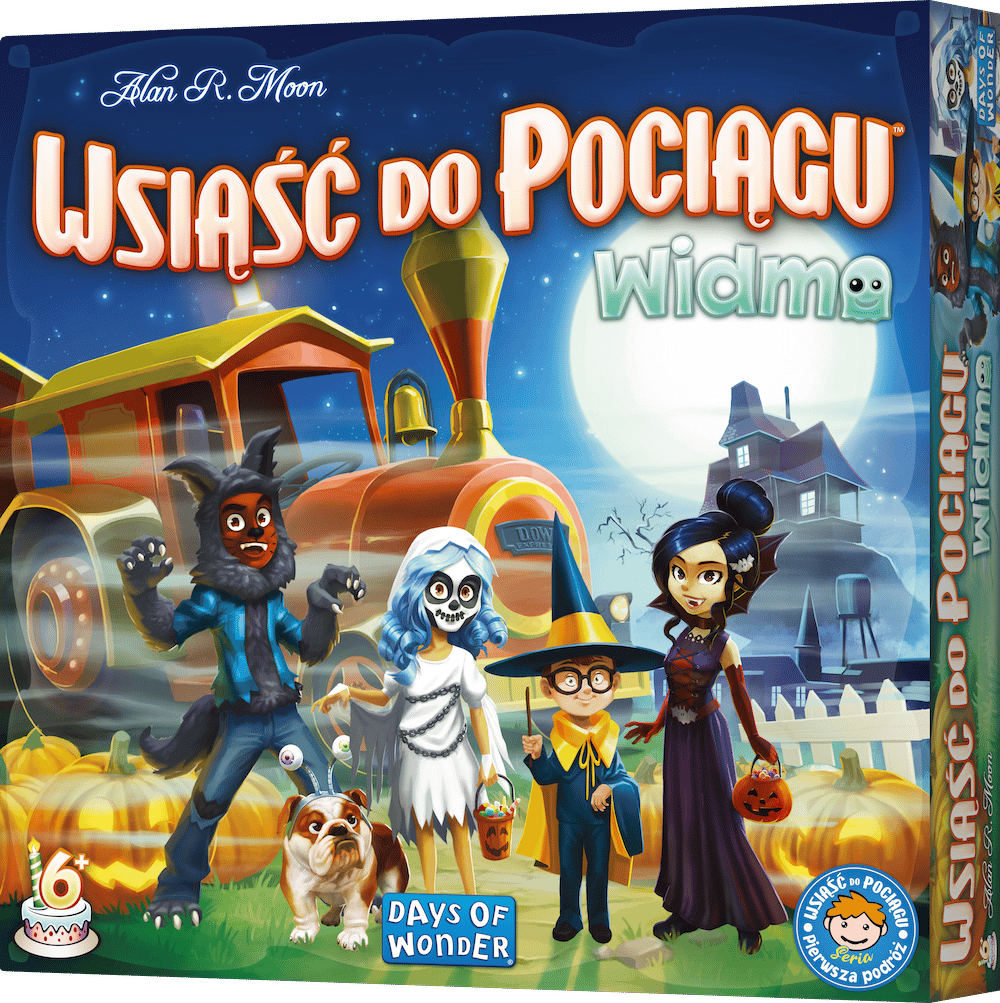 Wsiąść do Pociągu Widmo to łatwa do nauczenia i szybka odsłona popularnej serii gier rodzinnych, doskonała, żeby wprowadzić do niej młodszych graczy. Podczas zabawy dzieci i rodzice będą zbierali specjalne, kolorowe karty platform, które pozwolą im zajmować kolejne odcinki na mapie Koszmarkowa.