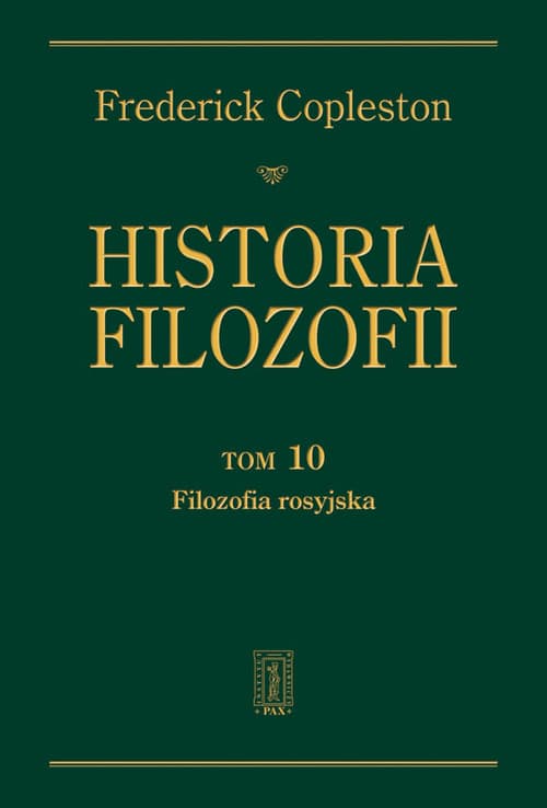 Historia Filozofii Fredericka Coplestona uważana jest za najlepsze i najwszechstronniejsze opracowanie dziejów europejskiej myśli filozoficznej od starożytności po czasy współczesne, jakie zostało kiedykolwiek dokonane przez jednego autora. Cechuje ją zarówno obiektywizm ujęcia tematu, jak i klarowność i przystępność języka. Pełni funkcję zarówno podręcznika akademickiego, jak i gruntownego wprowadzenia w dzieje filozofii dla każdego kto jest zainteresowany historią kultury europejskiej. Obecna edycja została uzupełniona dwoma dodatkowymi tomami poświęconymi filozofii rosyjskiej oraz empiryzmowi logicznemu i egzystencjalizmowi.10 tom,podejmujący temat filozofii rosyjskiej,dopełnia edycję monumentalnego dzieła brytyjskiego jezuity poświęconego euro-atlantyckiej historii filozofii.Rosyjska myśl filozoficzna wymyka się przyjętym na Zachodzie kryteriom uznawania danej problematyki za filozoficzną.Copleston w pełni świadomie włącza tu wątki z zakresu historii idei,historii teorii społecznych,a także historii myśli religijnej.Jego praca obejmuje zarówno okres sprzed rewolucji bolszewickiej,jak i oficjalną filozofię w Związku Radzieckim oraz myśl filozoficzną na uchodźstwie.