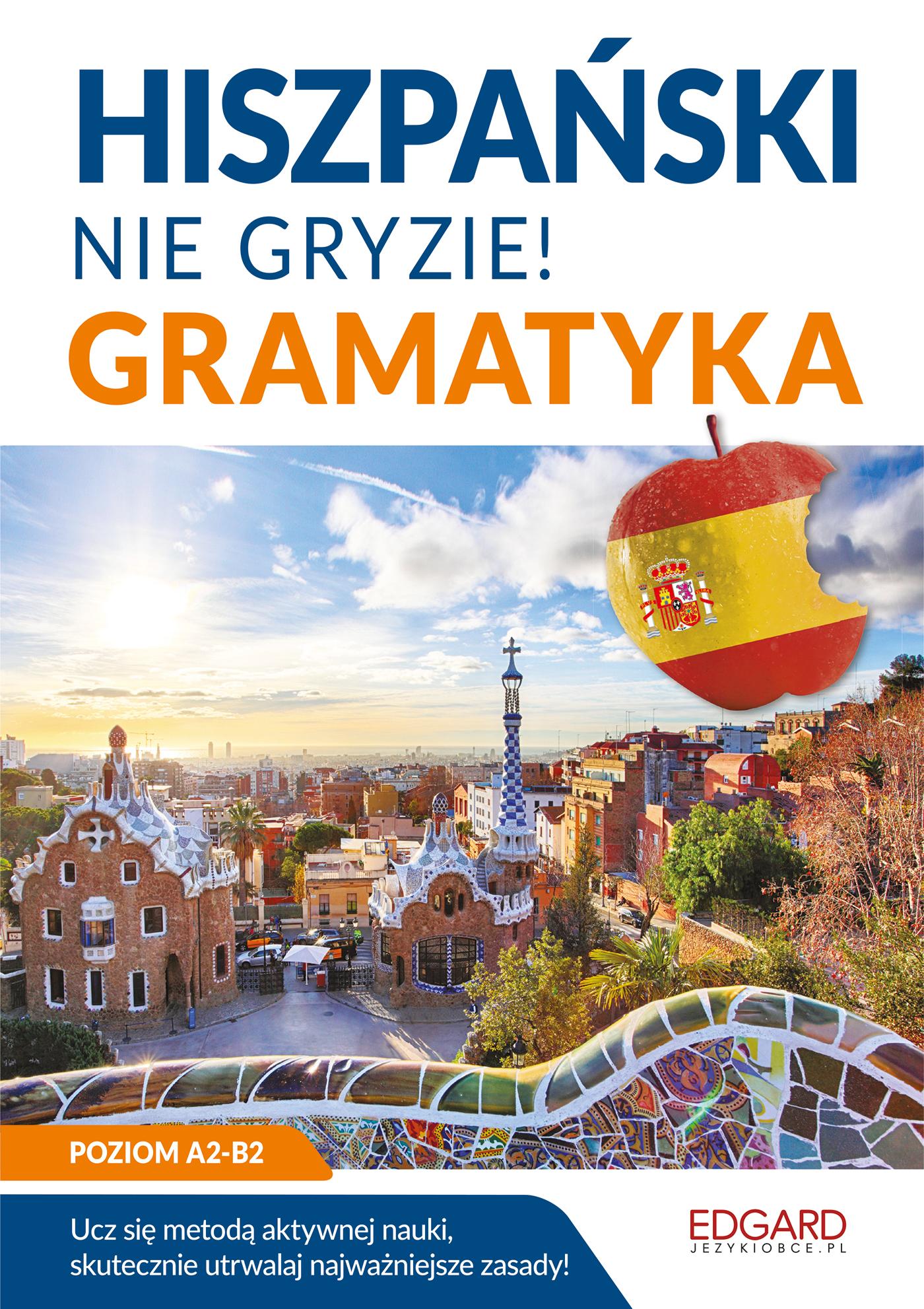 Hiszpański nie gryzie! Gramatyka to innowacyjny kurs do nauki języka hiszpańskiego, dzięki któremu w łatwy i przyjemny sposób poznasz najważniejsze zagadnienia gramatyczne wraz z praktycznymi przykładami i ćwiczeniami.