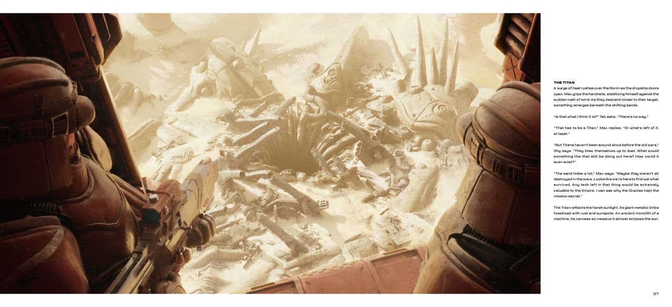 100 colour illustrations featuring original artwork from artists Steve Chinhsuan Wang (Gears of War 5), Nikolas Gekko (Halo Infinite, Destiny 2), Ben Mauro and never before seen storyboards from Syama Pedersen (Astartes).