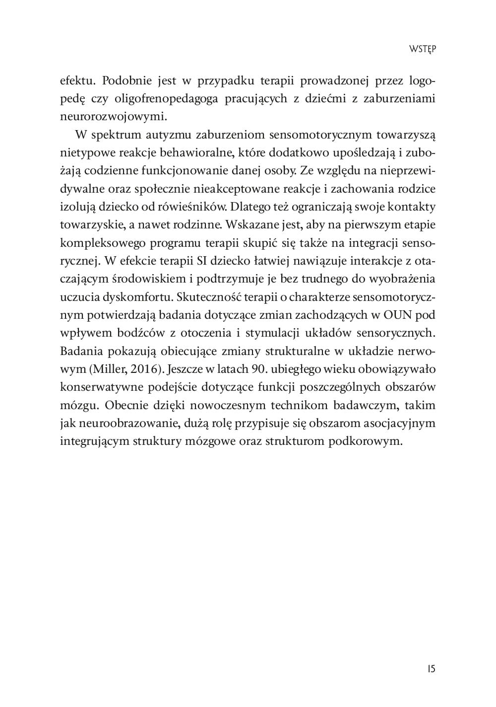 Książka Integracja sensoryczna w autyzmie ma charakter popularnego poradnika skierowanego do terapeutów SI, oligofrenopedagogów, psychologów, neurologopedów, logopedów i innych specjalistów pracujących z dziećmi z zaburzeniami neurorozwojowymi oraz do rodziców takich dzieci. Zawiera propozycje konkretnych, opartych na teorii integracji sensorycznej technik, ćwiczeń i strategii terapeutycznych, a także sposobów modyfikacji środowiska oraz sugestii dla opiekunów pod kątem domowego programu terapii.