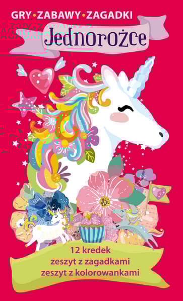 O książce Jednorożce Gry zabawy zagadki Zestaw kreatywny z kredkami