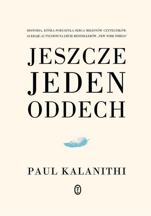 Historia, która poruszyła serca milionów czytelników Międzynarodowy fenomen wydawniczy, 42 kraje. 61 tygodni na liście bestsellerów „New York Timesa” Paul Kalanithi był jednym z najzdolniejszych amerykańskich neurochirurgów i ogromnym miłośnikiem poezji. W wieku 36 lat, po blisko 10-letniej pracy w charakterze neurochirurga i pod koniec wyczerpującej rezydentury, w momencie gdy Paulem zaczęły interesować się najważniejsze instytuty badawcze i najbardziej prestiżowe kliniki, młody lekarz usłyszał diagnozę IV stadium raka płuc. W jednej chwili Paul zmienia się z lekarza ratującego życie w pacjenta, który sam podejmuje walkę z chorobą. I zaczyna pisać. Wytrwale, strona po stronie, niezależnie od trudności, jakie przynosiła postępująca choroba. „Jeszcze jeden oddech” to szczera, wzruszająca historia wybitnego lekarza, który stanął twarzą w twarz ze śmiercią. Zapis determinacji i świadectwo walki. Paul Kalanithi zmarł w marcu 2015 roku, niemal do ostatniej chwili pracując nad tekstem. Ta niedokończona książka doskonale oddaje ulotność naszego życia. „Jeszcze jeden oddech” nadal bije rekordy popularności na całym świecie. Książka niemal natychmiast po wydaniu znalazła się na 1 miejscu listy bestsellerów „New York Timesa” i, mimo upływu kolejnych tygodni, już ponad sześćdziesięciu od premiery, nadal je zajmuje. W sumie prawa sprzedano do ponad 40 krajów, między innymi: Danii, Norwegii, Tajwanu, Izraela, Chin, Indonezji, Portugalii, Rosji. „Jest w tej niezwykłej książce takie piękne zdanie: Bohater podjął decyzję, by nie odwracać wzroku od śmierci. To zdanie i ta książka są drogowskazem dla wszystkich, którzy znaleźli się w ekstremalnej życiowej sytuacji, a przy tym piękną opowieścią o miłości małżeńskiej w czasie największej próby – śmiertelnej choroby” – Jerzy Stuhr „Poruszająca i mądra prawdziwa opowieść o rodzinie, medycynie i literaturze. Wyciska łzy i ogromnie inspiruje” — „The Washington Post” „Ta książka w piękny i mądry sposób przekonuje nas, że każdego dnia konfrontujemy się ze śmiercią... Ale prawdziwe pytanie brzmi nie JAK DŁUGO, lecz JAK będziemy żyć – odpowiedzi na to pytanie nie znajdziemy w żadnym podręczniku...” – „Guardian”