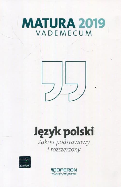 Vademecum z języka polskiego Wydawnictwa Operon to Twoja gwarancja sukcesu na egzaminie maturalnym. Zawarte w tym repetytorium treści pozwolą Ci uporządkować i powtórzyć wiadomości określone w podstawie programowej oraz skutecznie przygotować się do matury zarówno pisemnej, jak i ustnej z języka polskiego! Książka zawiera unikalny kod dostępu do interaktywnej platformy edukacyjnej GieldaMaturalna.pl, na której znajdziesz dodatkowe materiały, testy i informacje.