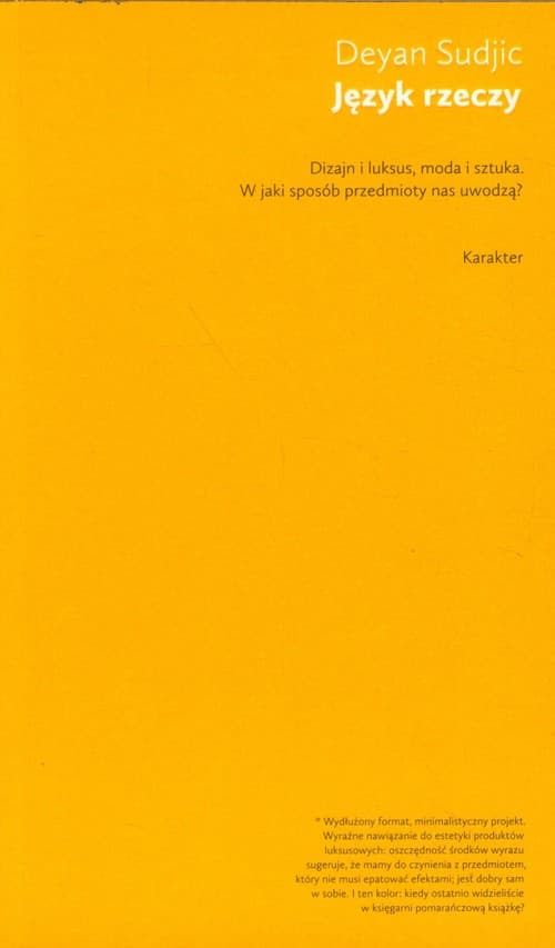 Dlaczego wymarzony komputer pod dwóch latach wydaje się nam bezużytecznym, tandetnym złomem? Z jakiego powodu niektóre przedmioty stają się fetyszami, a inne archetypami? Co dziś jest prawdziwym luksusem: posiadanie pewnych rzeczy czy raczej rezygnacja z nich? Dlaczego dajemy się wciągać w obłędny trans konsumpcji? Na te, a także wiele innych pytań, odpowiada Deyan Sudjic. Odwołując się do konkretnych przykładów z historii i współczesności, pokazuje, że dizajn to język, który podlega ewolucji i który warto nauczyć się czytać. Dzięki temu będziemy mogli lepiej zrozumieć otaczający nas świat i staniemy się bardziej świadomymi odbiorcami, a może nawet uda nam się uniknąć niektórych pułapek konsumpcjonizmu.