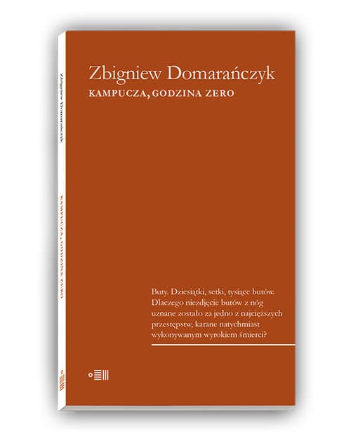 Tuż po upadku reżimu Czerwonych Khmerów, na początku 1979 roku, Zbigniew Domarańczyk przekracza granicę zamkniętej od czterech lat, umęczonej i straumatyzowanej Kambodży. To nie sławny na cały świat włoski reporter Tiziano Terzani wjechał wtedy pierwszy do Kambodży - jak sam twierdził. To był nasz Domarańczyk. Nowe władze wydają mu wizę wjazdową nr 1. Polski operator kamery oraz dźwiękowiec dostają wizy nr 2 i 3. Reżim Czerwonych Khmerów dokonał jednego z największych ludobójstw w nowożytnej historii świata. Autor książki rozmawia z ocalałymi i sam siebie pyta, jak to się mogło stać. Docieka dlaczego zabijano z tak niebywałym okrucieństwem. To pytanie nie daje mu spokoju. "Buty. Dziesiątki, setki, tysiące butów. Dużych i małych. Męskich i damskich. Eleganckich skórzanych trzewików i zdartych łapci z bambusowego łyka. Dlaczego niezdjęcie butów z nóg uznane zostało za jedno z najcięższych przestępstw, karane natychmiast wykonywanym wyrokiem śmierci?". „Kampucza, godzina zero” to przede wszystkim relacja z „wyzerowanego” kraju, stawiającego pierwsze kroki po ustaniu czteroletniego terroru i wymordowaniu jednej piątej obywateli. Trudno nie dostrzec analogii między wiejskimi komunami a nazistowskimi, sowieckimi albo północnokoreańskimi obozami zagłady. Reportaż Domarańczyka jest opowieścią o powtarzalności zła.