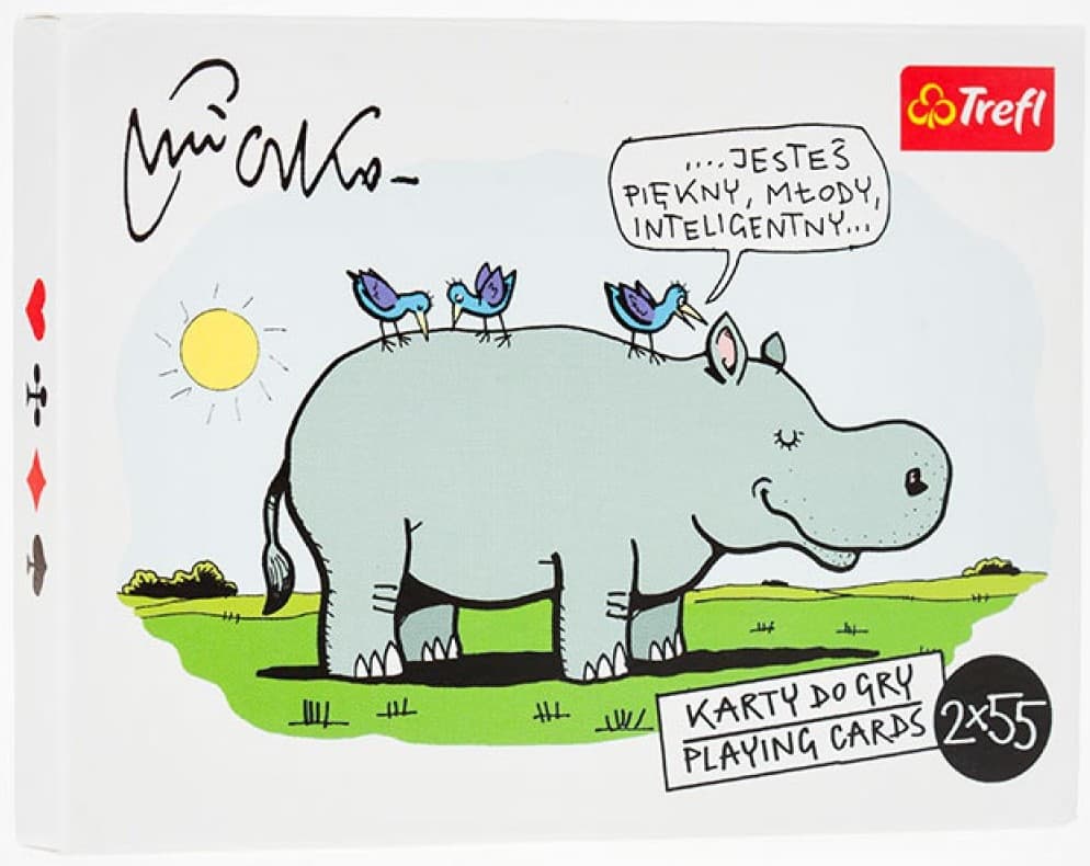 Zestaw dwóch talii kart zawierających rysunki obyczajowe autorstwa Andrzeja Mleczki. - w każdej 52 kart + 3 Jokery