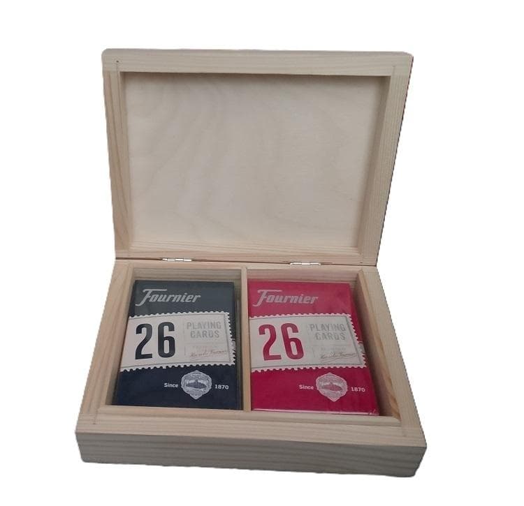 Komplet dwóch talii kart Fournier No 26 w drewnianej szkatułce.