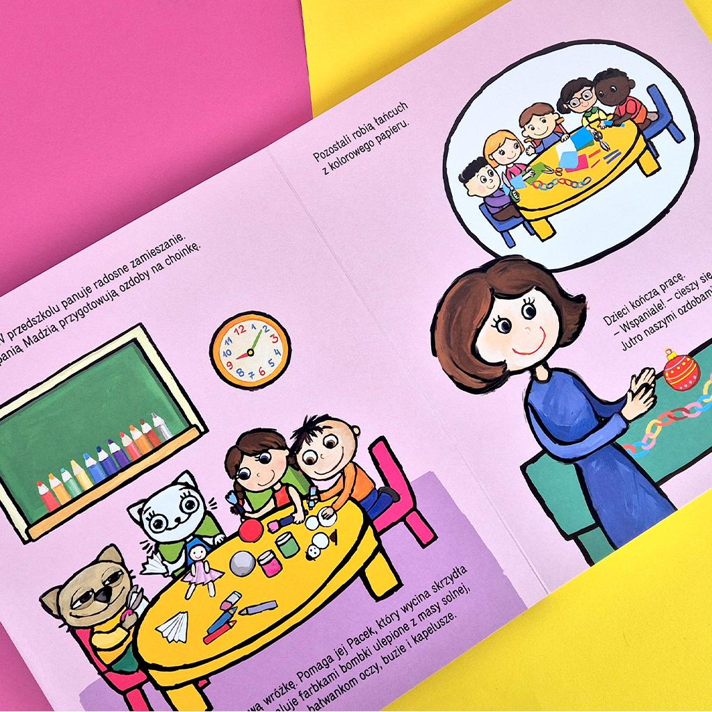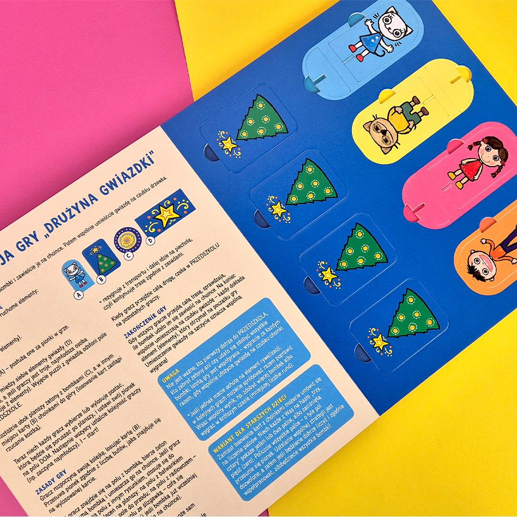 KICIA KOCIA I PRZYJACIELE ZAPRASZAJA DO WSPÓLNEJ ZABAWY! Kicia Kocia i pozostałe przedszkolaki maja do wykonania bardzo ważne zadanie – ubieranie choinki. Dzieci zgodnie współpracują, żeby przygotować piękne ozdoby. Ale jak umieszcza gwiazdę na czubku, skoro choinka jest taka wysoka? Świątecznej historyjce towarzyszy gra, która stanowi idealne wprowadzenie do świata planszówek. Rozgrywka jest krótka, a zasady proste. Gra nie wywołuje nadmiernej frustracji i nie prowokuje do niezdrowej rywalizacji. Zachęca do współpracy i koncentracji. Dzieci ćwiczą spostrzegawczość, liczenie, małą motorykę i myślenie strategiczne.Szczegółowe informacje na temat książki Kicia Kocia. Drużyna Gwiazdki