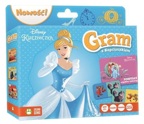 Seria „Gram z Disneyem” to urocze zestawy Disneya zaprojektowane z myślą o maluchach i ich opiekunach. W środku znajdują się najprostsze dwuelementowe puzzle lub domino, kartoniki z postaciami, z których można zrobić kukiełki do zabawy w teatr, a także książeczka z podpowiedziami, jak miło i pożytecznie spędzać czas z dzieckiem. Zagadki, rymowanki i opisy postaci przybliżą dzieciom świat bohaterów Disneya. Z Disneyem zawsze jest zabawa!