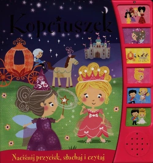 Przenieś się do krainy bajek. Naciskając kolejno sześć dźwiękowych przycisków, usłyszysz śliczną baśń i poznasz historię ze świata dobrych wróżek, królewskich balów i szklanych pantofelków.