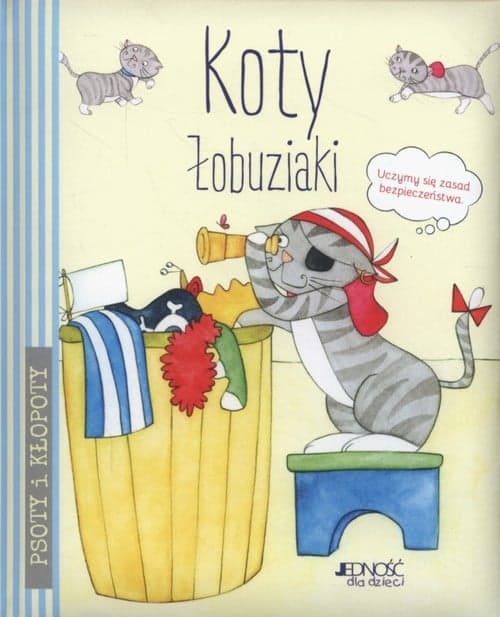 Ta urocza książeczka przygotowana została z myślą o najmłodszych czytelnikach. Jej barwne i wesołe ilustracje spodobają się wszystkim dzieciom, a opowiedziane w niej historyjki pomogą im uniknąć wielu niebezpiecznych sytuacji. Maluchy dowiedzą się między innymi, że trzeba uważać, wychylając się przez okno, że trzeba być ostrożnym przy włączonym żelazku czy wannie pełnej wody. Bohaterami książeczki są dwa kotki, braciszek i siostrzyczka, które wciąż psocą i płatają figle, zarazem uczą się zasad bezpieczeństwa obowiązujących w każdym domu. Dzieci wraz z nimi poznają wiele ważnych zasad, a przy okazji będą świetnie się bawić. Poznajcie z nami kocie przygody!