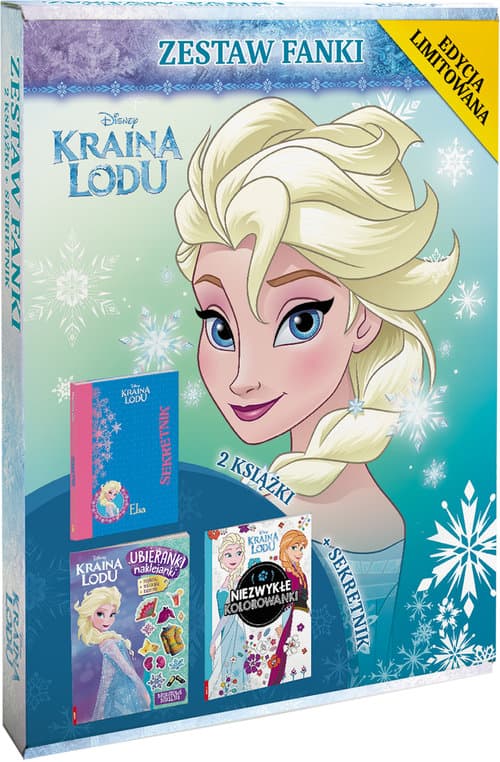 Zestaw fanki Książki w oryginalnym pudełku to gratka dla wszystkich wielbicielek filmu Kraina lodu. W zestawie znajdują się dwie fantastyczne książki z naklejkami oraz stronami do kolorowania. Dodatkową atrakcję stanowi Sekretnik z miejscem na zapiski, quizami i ciekawostkami na temat ulubionych bohaterów. Ten zestaw to znakomity pomysł na prezent.