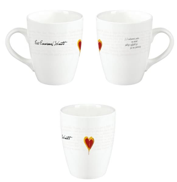 Zadrukowany kubek z motywem z książki Oskar i pani Róża opakowany w eleganckie pudełko. Kubek jest opatrzony cytatem [...] codziennie patrz na świat, jakbyś oglądał go po raz pierwszy. Można go myć w zmywarce. Miłość młodzieńcza, niespełniona, zakazana. Miłość, która prowadzi do zbrodni i na którą czeka się całe życie. Nikt piękniej od Schmitta nie przedstawia tak wielu odcieni tego wyjątkowego uczucia. Kolekcja kubków oparta na czterech najpiękniejszych opowiadaniach o miłości, nadziei i przyjaźni, wzbogacona pięknymi ilustracjami jest prezentem dla wszystkich wielbicieli prozy E.-E. Schmitta. W kolekcji znajdują się kubki z motywami z powieści Małe zbrodnie małżeńskie, Oskar i Pani Róża, Odette i inne Historie Miłosne oraz Marzycielka z Ostendy.
