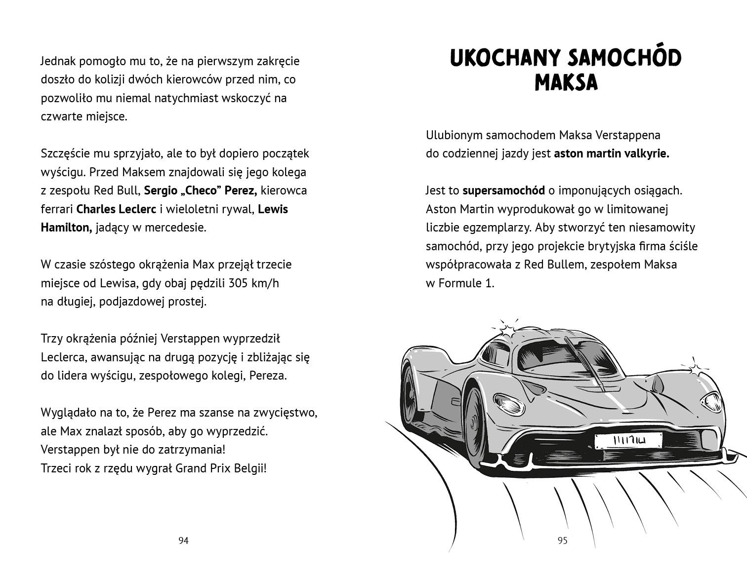 Jak to się stało, że Max Verstappen z gokartów przesiadł się do prawdziwych wyścigowych samochodów i stał się legendą wyścigów F1? Poznaj jego osiągnięcia, życiowe rekordy, najsłynniejsze i najtrudniejsze pojedynki na torze wyścigowym. Dowiedz się, jak i dzięki komu osiągnął swój wielki sukces. „Legendy Formuły 1” to seria pełna zaskakujących faktów i ciekawostek, statystyk i historii najbardziej znanych i popularnych kierowców F1. Nie zabraknie w niej opisów dotyczących budowy, projektowania i konstrukcji bolidów, wzbogaconych o świetne ilustracje. Książki napisane przez eksperta i komentatora F1 Maurice’a Hamiltona, który uczestniczył w ponad 500 Grand Prix i który jest autorem 30 książek o wyścigach.Szczegółowe informacje na temat książki Legendy Formuły 1. Max Verstappen