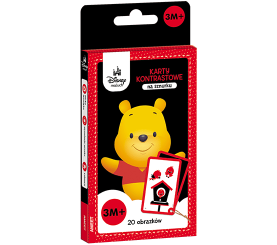 • karty w kontrastujących kolorach przyciągają uwagę i stymulują rozwój maluszka
