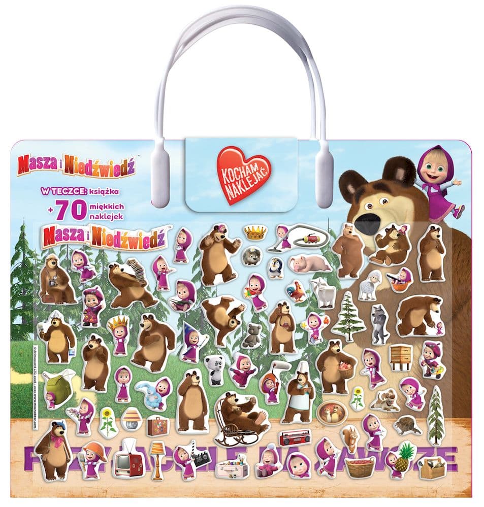 Masza i niedźwiedź Kocham naklejać to fantastyczna książeczka zawierająca teczkę z rączką, arkusz wypukłych, kolorowych naklejek ( ok. 70 naklejek ) oraz ciekawe odpowiadanie z ulubionymi bohaterami. Wspaniała zabawa!