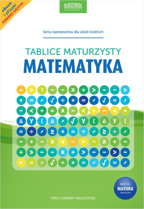 Potrzebujesz korepetycji z matematyki? Powtórki przed maturą? Szybkiej pomocy przed klasówką? Matematyka. Tablice maturzysty to idealna powtórka z matematyki dla maturzystów w formie wygodnych i przejrzystych tablic. Seria "OLDSCHOOL - stara dobra szkoła" została przygotowana przez doświadczonych korepetytorów i metodyków, a wszystkie publikacje są konsultowane z nauczycielami i poddawane testom przez samych maturzystów. Główne zalety tablic OldSchool: - wszystkie istotne zagadnienia z matematyki w pigułce - algebra, geometria, funkcje - trygonometria, bryły, rachunek prawdopodobieństwa - nowoczesna szata graficzna, ilustracje - prezentacja treści ułatwiająca zapamiętywanie - eBook i eFiszki do pobrania gratis! Domowe korepetycje tylko z OLDSCHOOL!