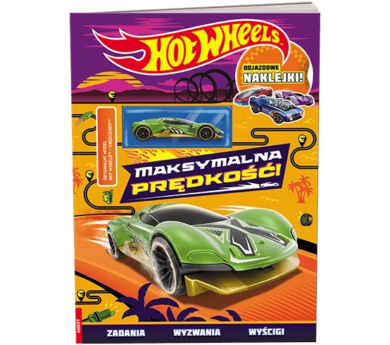 Książa z zadaniami i oryginalnym modelem samochodu Hot Wheels, prawdziwa gratka dla wszystkich małych fanów samochodów