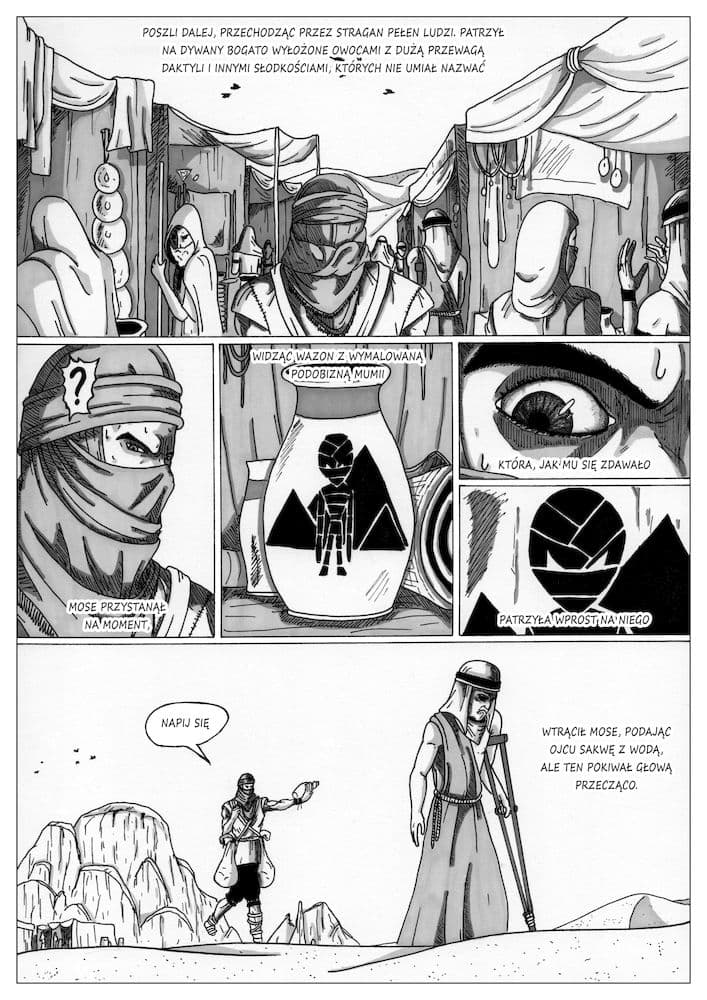 Mose doczekał się chwili obcięcia włosów i tym samym staje się mężczyzną, mogącym decydować o swym losie. Jego ojciec, Keftir to weteran wojenny, wierny służbie Faraonowi. Ma jedno pragnienie - aby syn wstąpił do wojska i wspomógł utrzymanie domostwa, podarowanego im przez Faraona Echnatona. Mose jednak ma inne plany wobec swojej przyszłości, nieświadomy tego, że jego rodzice ukrywają przed nim fakt, iż są dręczeni i nachodzeni przez zbieraczy podatków, za długi wobec skarbca Faraona. Nie opuszcza go również przeczucie, że nadchodzi coś strasznego. Lud coraz częściej szeptał, z przerażeniem w głosie, że wkrótce przybędzie mumia, a wraz z nią nastąpi koniec Egiptu. Ciemność zawisa nad Egiptem. Mose zmuszony będzie dokonać wyboru, a potem ponieść tego konsekwencje. Czy mumia, o której wszyscy mówią, jest jedynie zapowiedzią nadejścia złych czasów? A może jest ona prawdziwa i nawiedza go w jego koszmarach nie bez powodu? Paweł Leśniak po raz kolejny daje wyraz swojej niesamowitej wyobraźni, kreując świat, który zaskakuje, trzyma w napięciu oraz przeraża do szpiku kości!Szczegółowe informacje na temat książki Mumia Tom 1