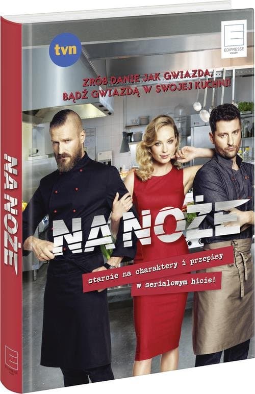 “Na noże” to porcja kulinarnych pomysłów prosto z serialu. Śniadania, dania od serca, dary morza i desery to cztery działy ze świeżymi, nowoczesnymi, ale niezbyt skomplikowanymi przepisami. A wszystko przyprawione sporą dawką telewizji widzianej od kuchni. Serialowy szef Jacek Majchrzak, genialny kucharz, stawia wszystko na jedną kartę. Otwiera autorskie Bistro u Antoniego. Ma wybitny smak, talent i determinację, a u jego boku stoją oddani przyjaciele: Zuza i Patryk. Czy to wystarczy, aby wspiąć się na szczyt w branży, w której konkurencja w każdej chwili jest gotowa wbić nóż w plecy? Wojciech Zieliński w roli utalentowanego szefa kuchni, który chce odnieść sukces w piekielnej branży kulinarnej, nie tracąc swoich ideałów. Piotr Stramowski jako kulinarny czarny charakter. A między głównymi bohaterami dwie równie charakterne kobiety – grane przez Weronikę Książkiewicz i Joannę Jarmołowicz.