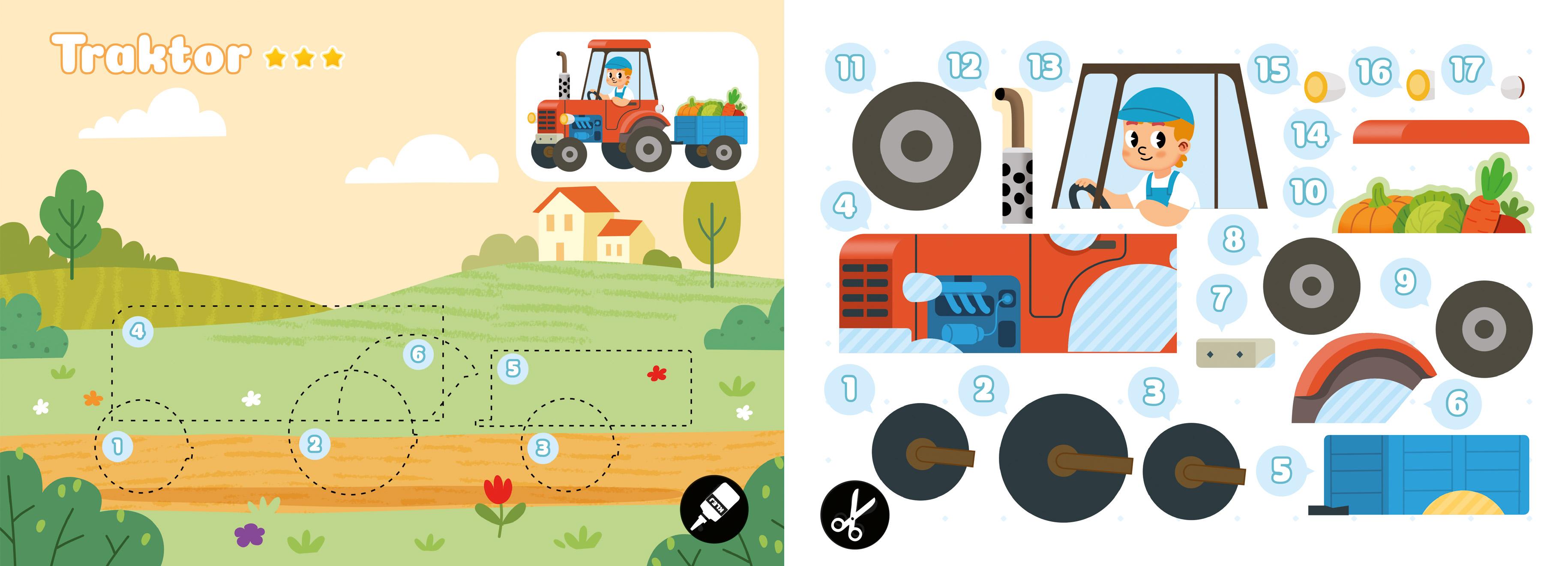 Seria wesołych książeczek dla dzieci z wycinankami i tłami do wklejania. Każda książka zawiera ilustracje do uzupełnienia. Wystarczą tylko nożyczki, klej oraz kredki lub flamastry.